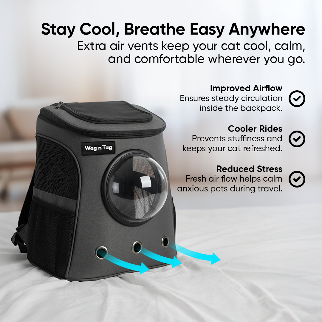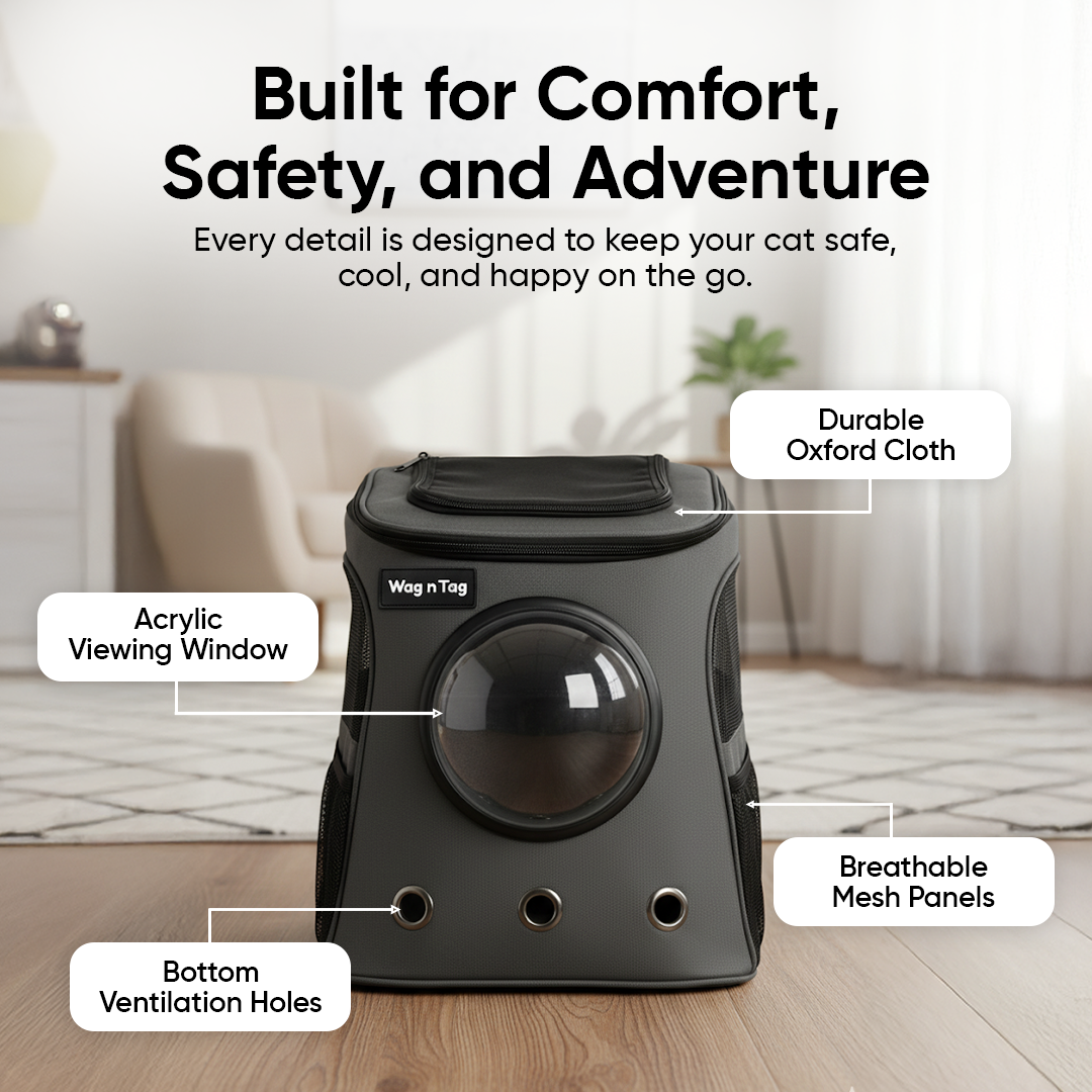 The Wag n Tag The Cat Capsule Travel Backpack | For Larger Cats goes beyond ordinary pet carriers. With its extra-large capacity, airline-ready design, breathable mesh panels, and durable YKK zippers, it’s built to keep your cat safe and comfortable and to make every trip easier for you. Designed for cats up to 25 lbs, it’s the smarter way to travel together.
